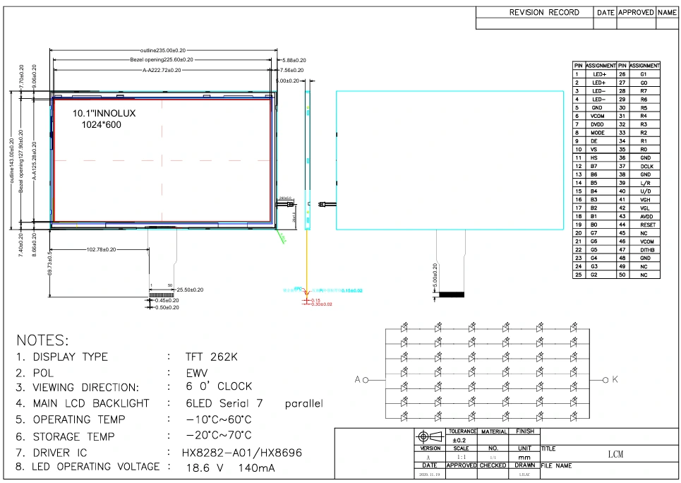 Zastosowania kliniczne: 10,1 cala Wysoka jasność TFT IPS Moduł ekranu LCD TFT jest przeznaczony do interfejsów z monitorami wieloparametrowymi, przenośne dopplery płodowe, zaciski szybkiej oceny na pogotowiu i inteligentne dozowniki leków.