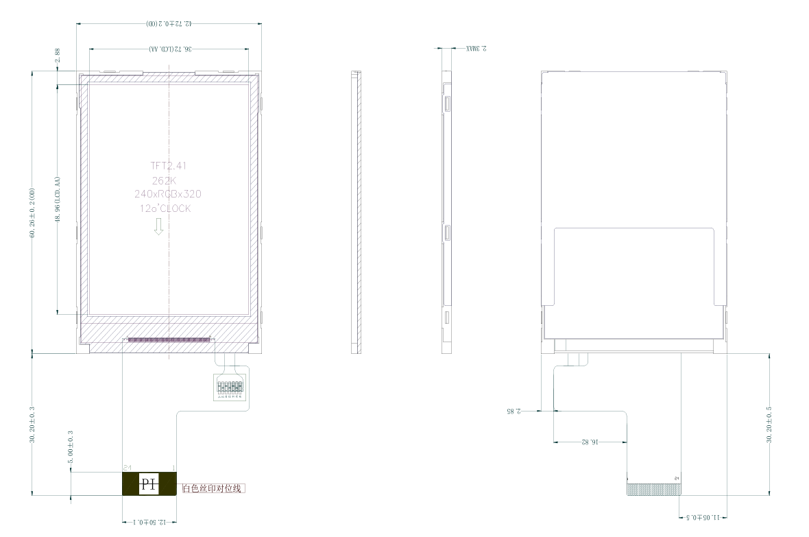 Mały, normalnie biały moduł wyświetlacza TFT LCD o przekątnej 2,4 cala firmy TF przyjmuje tryb wyświetlania „trybu białego”, zapewniający wysoką rozdzielczość 240 × RGB × 320 pikseli i obsługuje 8/16-bitowy interfejs równoległy (taktowanie 8080) MCU, kompatybilny z różnymi mikrokontrolerami.