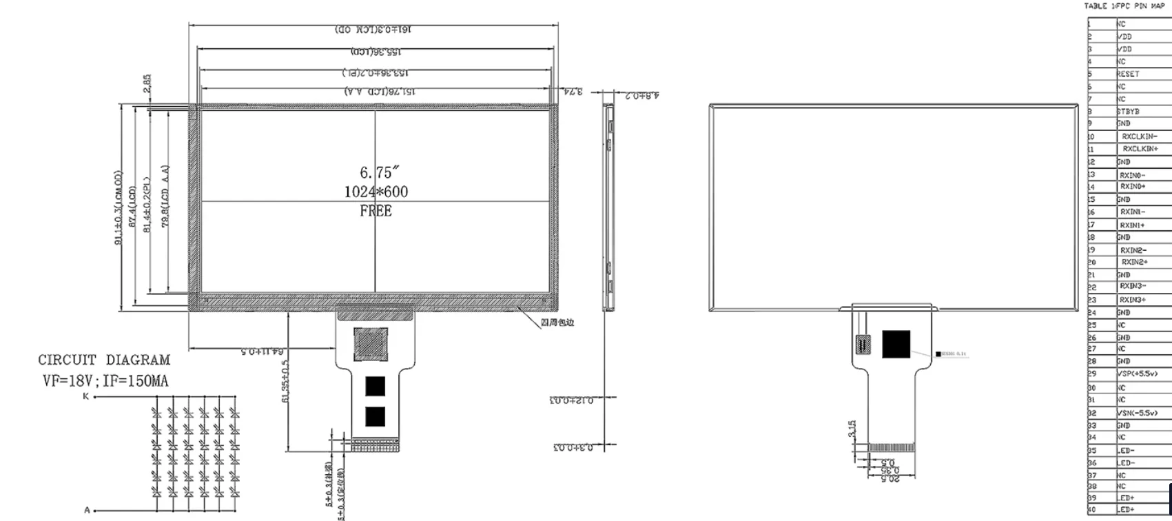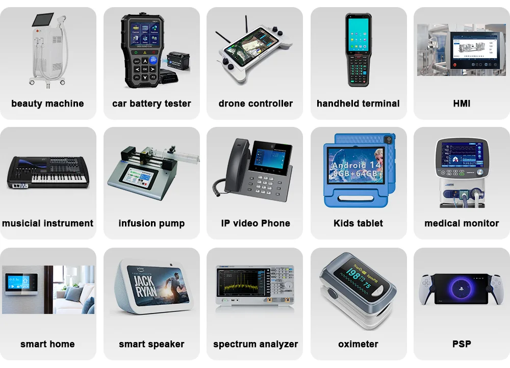 Elektronika konsumpcyjna: 1024xrgbx600; Podłącz przez 3/4-wire SPI, MCU 8-bit/16-bit; ≥30000H Życie. IPS darmowy widok. Ten typ moduł LCD jest idealny do tabletu /inteligentnego głośnika /drona zdalnego sterownika itp.
