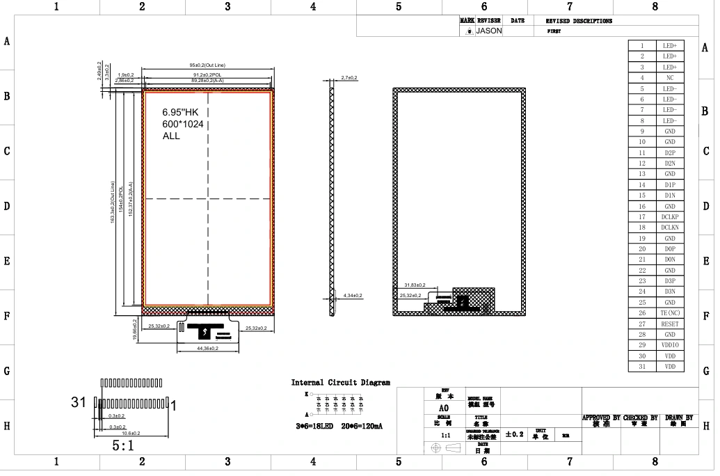 6,95 cala wysokiej rozdzielczości IPS Moduł ekranu LCD TFT ma 6,95-calowy wyświetlacz LCD TFT o wysokiej rozdzielczości 600 x RGB x 1024 pikseli, wysoką jasność 350 CD/m² i wysoki współczynnik kontrastu 700: 1. W połączeniu z technologią wyświetlania kąta w pełni, 6,95-calowy moduł ekranu LCD o wysokiej rozdzielczości TFT zapewnia wyraźne i jasne obrazy pod dowolnym kątem. Wykorzystuje szybki interfejs MIPI do stabilnej i wydajnej transmisji, obsługuje szeroki zakres temperatur roboczych od -10 ° C do 60 ° C i jest wysoce niezawodny, co czyni go odpowiednim potrzebami wyświetlania różnych inteligentnych urządzeń.